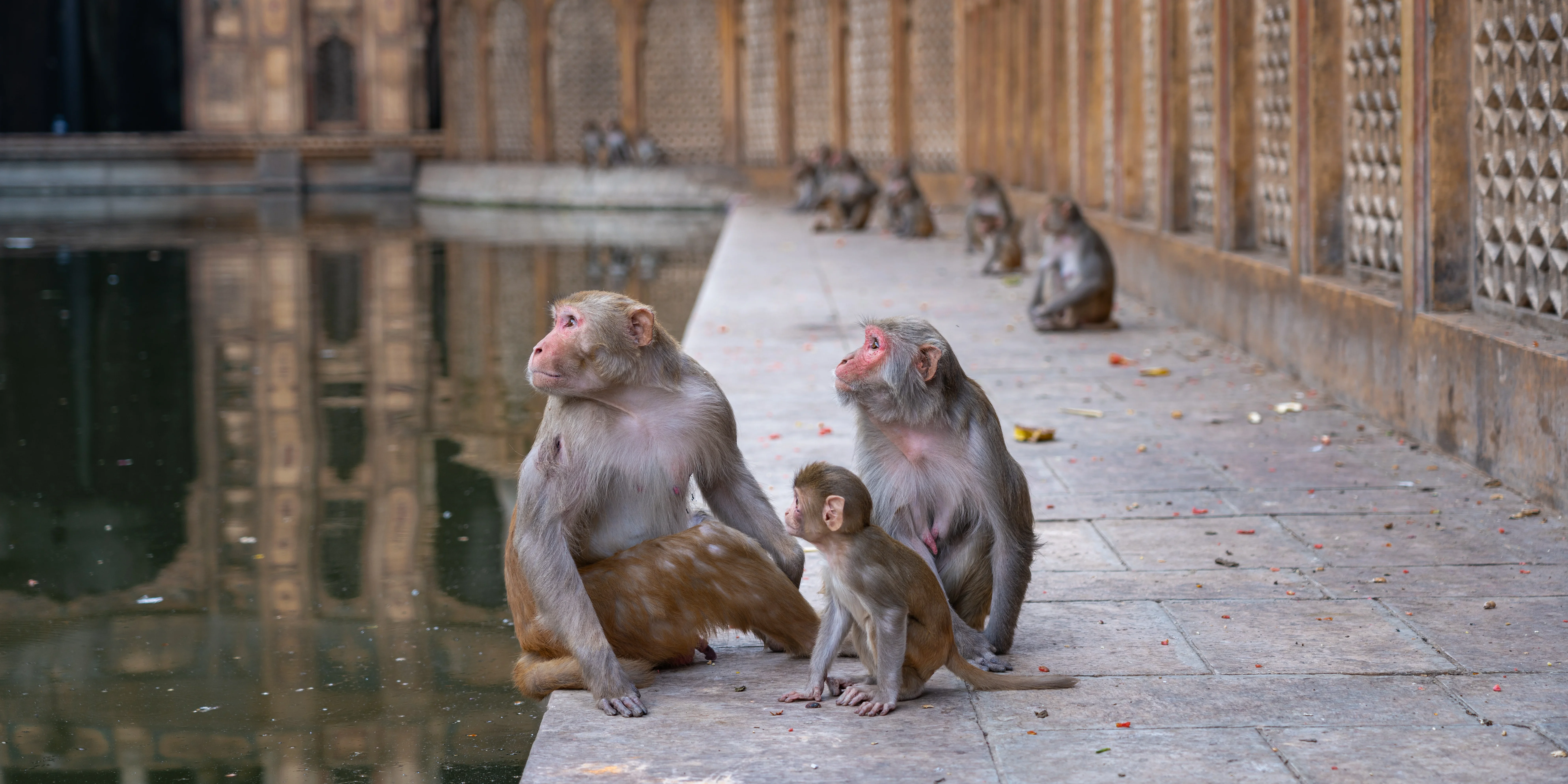You will particularly encounter these macaques at holy sites around India, particularly at the famous Monkey Temple in Jaipur.
