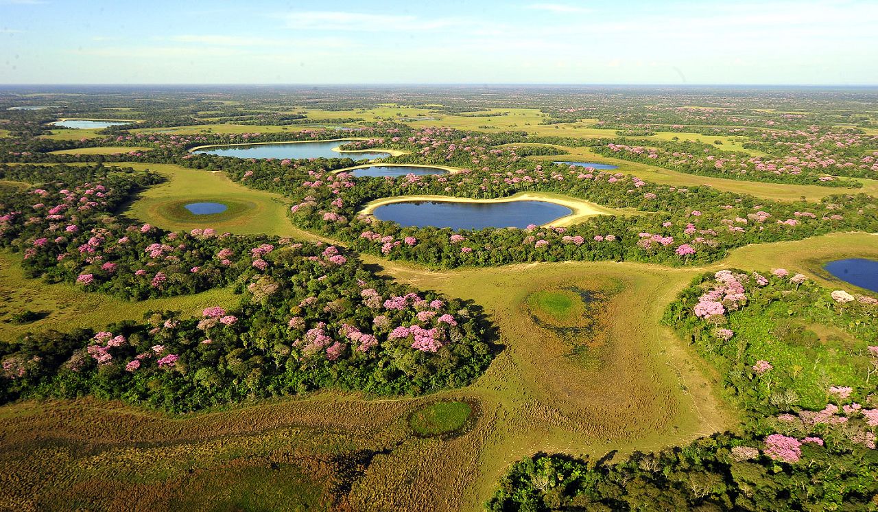 The wetlands are comprised of a patchwork of different ecosystems, including areas of rainforest characteristic of the Amazon, semi-arid woodlands and open savanna grasslands.