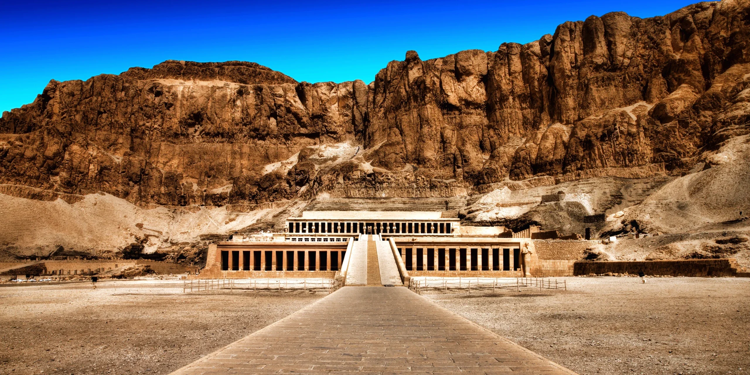 The image shows the Temple of Hatshepsut in Luxor (Egypt). Places like this bring back happy memories of being dragged around ancient sites on family trips all the way back in the 1980s.